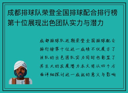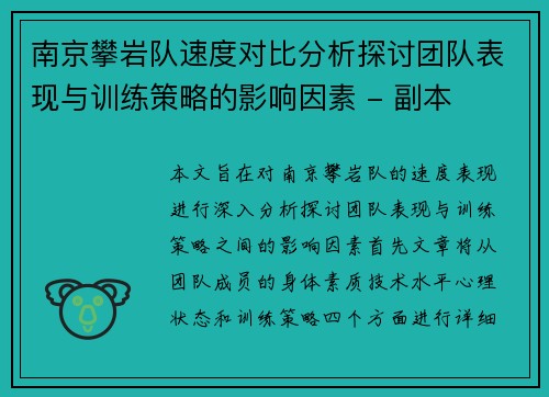 本文旨在对南京足球队在挑战赛中的默契配合与战术执行进行深入分析。通过对球队的整体表现、个人技术、战术安排以及心理素质等多个方面的研究,我们将揭示出南京足球队在激烈比赛中如何通过有效的协作和精确的战术执行来提升竞技水平。首先,文章将探讨球队成员之间的配合默契,通过具体案例分析他们在比赛中的相互信任与支持;接着,将分析球员个人技能如何为团队合作提供基础;然后,讨论教练团队所制定的战术策略及其在实践中的...